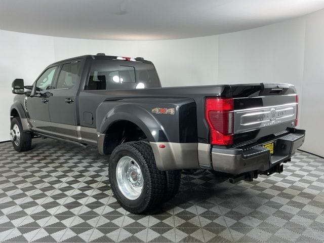 CARFAX One-Owner. Black 2020 Ford F-450SD King Ranch DRW 4D Crew Cab Power Stroke 6.7L V8 DI 32V OHV Turbodiesel 10-Speed Automatic 4WD Priced below KBB Fair Purchase Price! LOCAL TRADE , CARFAX ONE OWNER , LONG BED , 4X4 , 4WD, King Ranch Ultimate Package, Multi-Contour Seats, Power-Deployable Running Boards, Quad Beam LED Headlamps & LED Taillamps, Tailgate Step & Handle, Twin Panel Power Moonroof, 10 Speakers, 110V/400W Outlet, 19.5" Forged Polished Aluminum Wheels, 397 Amp Alternators, 4-Wheel Disc Brakes, ABS brakes, Adaptive Cruise Control & Collision Warning, Adaptive Steering, Adjustable pedals, Air Conditioning, Alloy wheels, AM/FM radio: SiriusXM, Auto High-beam Headlights, Auto tilt-away steering wheel, Auto-dimming Rear-View mirror, Automatic temperature control, Brake assist, Camper Package, Compass, Delay-off headlights, Driver door bin, Driver vanity mirror, Dual front impact airbags, Dual front side impact airbags, Dual rear wheels, Electronic Stability Control, Emergency communication system: SYNC 3 911 Assist, Engine Block Heater, Exterior Parking Camera Rear, Flow-Through Console, Front anti-roll bar, Front Bucket Seats, Front Center Armrest, Front dual zone A/C, Front fog lights, Front reading lights, Fully automatic headlights, Garage door transmitter, GVWR: 14,000 lb Payload Package, Heated door mirrors, Heated front seats, Heated Rear Seats, Heated steering wheel, Illuminated entry, Illuminated running boards, Leather steering wheel, Limited Slip w/4.30 Axle Ratio, Memory seat, Navigation System, Order Code 770A, Outside temperature display, Overhead airbag, Overhead console, Panic alarm, Passenger door bin, Passenger vanity mirror, Pedal memory, Power door mirrors, Power driver seat, Power passenger seat, Power steering, Power windows, PowerScope Trailer Tow Mirrors w/Heat, Radio data system, Radio: B&O System by Bang & Olufsen, Rain sensing wipers, Rapid-Heat Supplemental Cab Heater, Rear anti-roll bar, Rear Parking Sensors, Rear