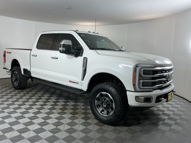 Recent Arrival! Clean CARFAX. White 2023 Ford F-350SD Platinum 4D Crew Cab Power Stroke 6.7L V8 DI 32V OHV Turbodiesel 10-Speed Automatic 4WD CARFAX ZERO ACCIDENTS , SHORT BED , 4X4 , 4WD, Lane Departure Warning System, Textured Matte Finish Off-Road Running Boards, Tremor Off-Road Package, Wheels: 18" Machined/Tarnished Dark Anodized Alum, 4-Wheel Disc Brakes, ABS brakes, Adjustable pedals, Air Conditioning, Alloy wheels, AM/FM radio: SiriusXM with 360L, Auto High-beam Headlights, Auto tilt-away steering wheel, Auto-dimming Rear-View mirror, Automatic temperature control, Brake assist, Compass, Delay-off headlights, Driver door bin, Driver vanity mirror, Dual front impact airbags, Dual front side impact airbags, Electronic Stability Control, Electronic-Locking w/3.73 Axle Ratio, Emergency communication system: SYNC 4 911 Assist, Exterior Parking Camera Rear, Flow-Through Console, Front anti-roll bar, Front Bucket Seats, Front Center Armrest, Front dual zone A/C, Front fog lights, Front reading lights, Fully automatic headlights, Garage door transmitter, Heated door mirrors, Heated front seats, Heated rear seats, Heated steering wheel, Illuminated entry, Leather steering wheel, Low tire pressure warning, Memory seat, Navigation system: Connected Navigation, Outside temperature display, Overhead airbag, Overhead console, Panic alarm, Passenger door bin, Passenger vanity mirror, Pedal memory, Power door mirrors, Power driver seat, Power passenger seat, Power steering, Power windows, Radio: B&O Unleashed Sound System by Bang & Olufsen, Rain sensing wipers, Rear reading lights, Rear seat center armrest, Rear step bumper, Rear window defroster, Remote keyless entry, Security system, SiriusXM Radio w/360L, Speed control, Split folding rear seat, Steering wheel memory, Steering wheel mounted audio controls, SYNC 4 w/Enhanced Voice Recognition, Tachometer, Telescoping steering wheel, Tilt steering wheel, Traction control, Trip computer, Turn signal indicator mirror