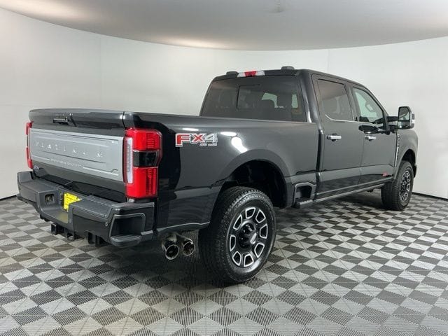 Recent Arrival! Clean CARFAX. Black 2023 Ford F-350SD Platinum 4D Crew Cab Power Stroke 6.7L V8 DI 32V OHV Turbodiesel 10-Speed Automatic 4WD Priced below KBB Fair Purchase Price! CARFAX ZERO ACCIDENTS , SHORT BED , 4X4 , 4WD, FX4 Off-Road Package, Hill Descent Control, Off-Road Specifically Tuned Shock Absorbers, Unique FX4 Off-Road Box Decal, 4-Wheel Disc Brakes, ABS brakes, Adjustable pedals, Air Conditioning, Alloy wheels, AM/FM radio: SiriusXM with 360L, Auto High-beam Headlights, Auto tilt-away steering wheel, Auto-dimming Rear-View mirror, Automatic temperature control, Brake assist, Compass, Delay-off headlights, Driver door bin, Driver vanity mirror, Dual front impact airbags, Dual front side impact airbags, Electronic Stability Control, Electronic-Locking w/3.73 Axle Ratio, Emergency communication system: SYNC 4 911 Assist, Exterior Parking Camera Rear, Flow-Through Console, Front anti-roll bar, Front Bucket Seats, Front Center Armrest, Front dual zone A/C, Front fog lights, Front reading lights, Fully automatic headlights, Garage door transmitter, Heated door mirrors, Heated front seats, Heated rear seats, Heated steering wheel, Illuminated entry, Leather steering wheel, Low tire pressure warning, Memory seat, Navigation system: Connected Navigation, Outside temperature display, Overhead airbag, Overhead console, Panic alarm, Passenger door bin, Passenger vanity mirror, Pedal memory, Power door mirrors, Power driver seat, Power passenger seat, Power steering, Power windows, Radio: B&O Unleashed Sound System by Bang & Olufsen, Rain sensing wipers, Rear reading lights, Rear seat center armrest, Rear step bumper, Rear window defroster, Remote keyless entry, Security system, SiriusXM Radio w/360L, Speed control, Split folding rear seat, Steering wheel memory, Steering wheel mounted audio controls, SYNC 4 w/Enhanced Voice Recognition, Tachometer, Telescoping steering wheel, Tilt steering wheel, Traction control, Trip computer, Turn signal indicator mi