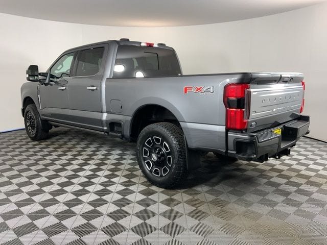 CARFAX One-Owner. Gray 2024 Ford F-350SD Platinum 4D Crew Cab Power Stroke 6.7L V8 DI 32V OHV Turbodiesel 10-Speed Automatic 4WD CARFAX ONE OWNER , CARFAX ZERO ACCIDENTS , SHORT BED , 4X4 , 4WD, 4-Wheel Disc Brakes, ABS brakes, Adjustable pedals, Air Conditioning, Alloy wheels, AM/FM radio: SiriusXM with 360L, Auto High-beam Headlights, Auto tilt-away steering wheel, Auto-dimming Rear-View mirror, Automatic temperature control, Brake assist, Compass, Delay-off headlights, Driver door bin, Driver vanity mirror, Dual front impact airbags, Dual front side impact airbags, Electronic Stability Control, Electronic-Locking w/3.55 Axle Ratio, Electronic-Locking w/3.73 Axle Ratio, Emergency communication system: SYNC 4 911 Assist, Engine Block Heater, Exterior Parking Camera Rear, Flow-Through Console, Front anti-roll bar, Front Bucket Seats, Front Center Armrest, Front dual zone A/C, Front fog lights, Front reading lights, Fully automatic headlights, FX4 Off-Road Package, Garage door transmitter, Heated door mirrors, Heated front seats, Heated rear seats, Heated steering wheel, Hill Descent Control, Illuminated entry, Leather steering wheel, LED Roof Clearance Lights, Low tire pressure warning, Memory seat, Navigation system: Connected Navigation (includes complimentary 1-year trial), Off-Road Specifically Tuned Shock Absorbers, Outside temperature display, Overhead airbag, Overhead console, Panic alarm, Passenger door bin, Passenger vanity mirror, Pedal memory, Power door mirrors, Power driver seat, Power passenger seat, Power steering, Power windows, Radio: B&O Unleashed Sound System by Bang & Olufsen, Rain sensing wipers, Rear reading lights, Rear seat center armrest, Rear step bumper, Rear window defroster, Remote keyless entry, Security system, SiriusXM Radio w/360L, Speed control, Split folding rear seat, Steering wheel memory, Steering wheel mounted audio controls, SYNC 4 w/Enhanced Voice Recognition, Tachometer, Telescoping steering wheel, Tilt steering